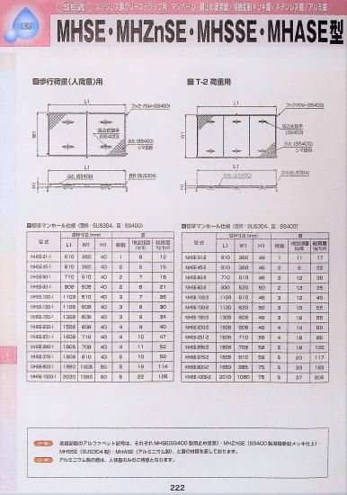 SE式 ステンレス製グリーストラップ用 マンホール 錆止め塗装蓋/溶融亜鉛メッキ蓋/ステンレス蓋/アルミ蓋 MHSE・MHZnSE・MHSSE・MHASE型 T-2 荷重用