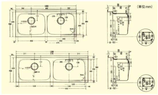 スギコステンレスシンクボールは、素材のSUS430(18CR)ステンレス(特殊な製造工程により加工したステンレス板材料)を熱処理をおこなわないで深さ260mm(450シリーズ)にプレスした商品に製作したものです。 ※シンクボールに付いては引合時に、深さ及び排水穴径と位置の確認お願いします。 ※ボール SH-4545(W450×D355×H260mm)×2ヶ所使用 <仕様>(シンクトップ奥行750mm用) 材質:SUS430(18CR)ステンレス 板厚:t=0.7mm 仕上げ:トップ(天板) #4:ボール(水槽)2BB 排水穴:Φ115mm排水トラップ用 オーバーフロー:小判型でTO-467KB使用の事(別売) サイズmm 納期:取り寄せ品 詳しくはHPをご覧ください。 http://sugico.co.jp/catalog/buhin 最近チェックした商品