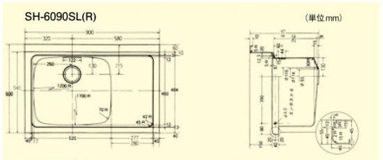 スギコ 1槽水切付シンクトップ SH-6090SL(R)