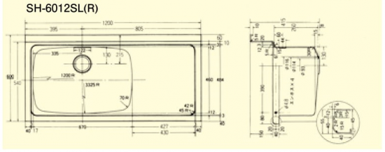 スギコ 1槽水切付シンクトップ SH-6012SL(R)