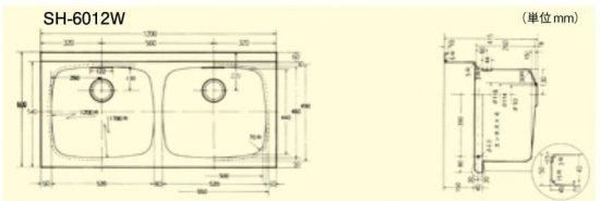 スギコ 2槽シンクトップ SH-6012W