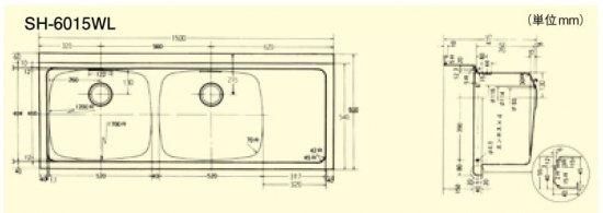 スギコ 2槽水切付シンクトップ SH-6015WL(R)