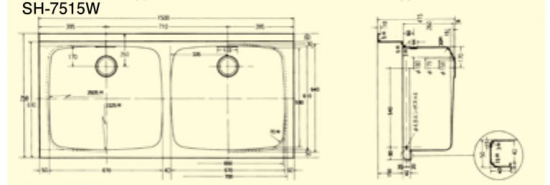 スギコ 2槽シンクトップ SH-7515W
