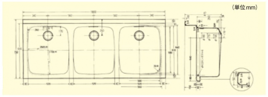 スギコステンレスシンクボールは、素材のSUS430(18CR)ステンレス(特殊な製造工程により加工したステンレス板材料)を熱処理をおこなわないで深さ260mm(600/750シリーズ)にプレスした商品に製作したものです。 ※ボール SH-7552-260(W520×D610×H260mm)×3ヶ所使用 <仕様> 材質:SUS430(18CR)ステンレス 板厚:t=1.0mm、ボール=0.9mm 仕上げ:トップ(天板) #4:ボール(水槽)2BB 排水穴:Φ180mm排水トラップ用 オーバーフロー:小判型でTO-467KB使用の事(別売) サイズmm ※送料がプラス1万追加されます。 納期:取り寄せ品 詳しくはHPをご覧ください。 http://sugico.co.jp/catalog/buhin
