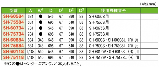 ※上枠は、スギコ商品の450・600・750シリーズブレスシンクトップのみに使用可能です(別売)。 ※30×30のアングル使用時は、D寸法(D1:70mmを73mmに、D3:91mmを94mmに)プラス6mm 材質:MSB60C(20×30 アングル・メッキ付)t=3.2mm サイズ(mm) W:1184 W1:540 D:545 D1:67 D2:390 D3:88 使用機種番号:SH-6012W・SH-6012SL(R)用 ●はセンターにΦ3.7mm穴1ヶ所 納期:取り寄せ品 詳しくはHPをご覧ください。 http://sugico.co.jp/catalog/buhin