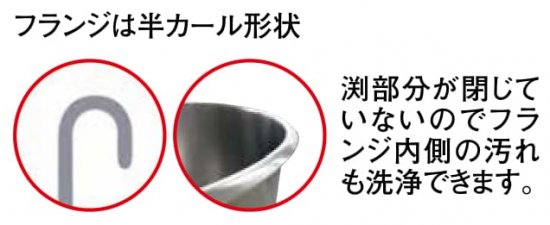 ・フランジが半カール形状ですので、フランジ部分についた汚れも掃除しやすくなっています。