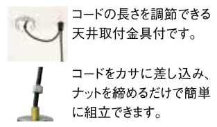 コードをカサに差し込み、ナットを締めるだけで簡単に組立できます。