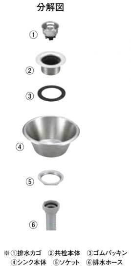 18-8テーパー型平底シンク(共栓・ジャバラホースセット) SH-3306CP・TO-110・TO-192/80(普)