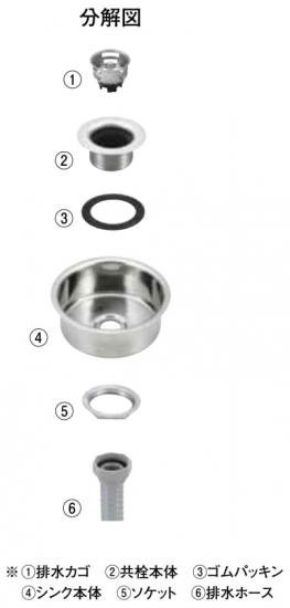18-8丸型平底シンク(共栓・ジャバラホースセット) SH-5936・TO-110・TO-192/80(普)